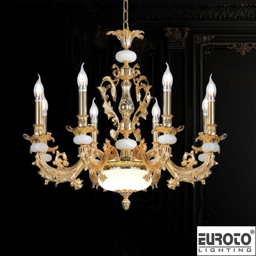 Đèn chùm đồng nến chao đá Ø770*H650+500 – E14*8 Euroto: Sự Kết Hợp Hoàn Hảo Giữa Cổ Điển Và Hiện Đại 🌟