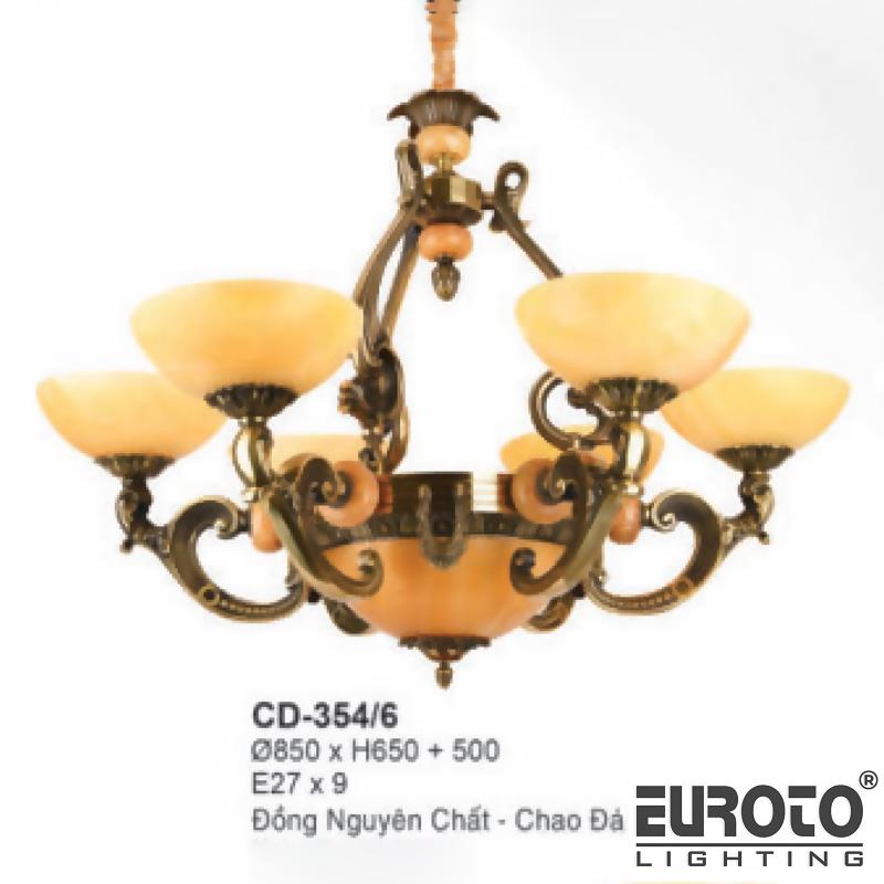 Đèn chùm đồng Ø850*H650+500 – E27*9 đồng nguyên chất – chao đá Euroto: Sự kết hợp hoàn hảo của nghệ thuật và công năng