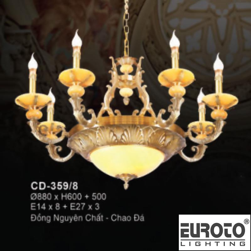 Đèn chùm đồng Ø880*H600+500 – E14*8 + E27*3 đồng nguyên chất – chao đá Euroto: Tác phẩm nghệ thuật chiếu sáng 🌟