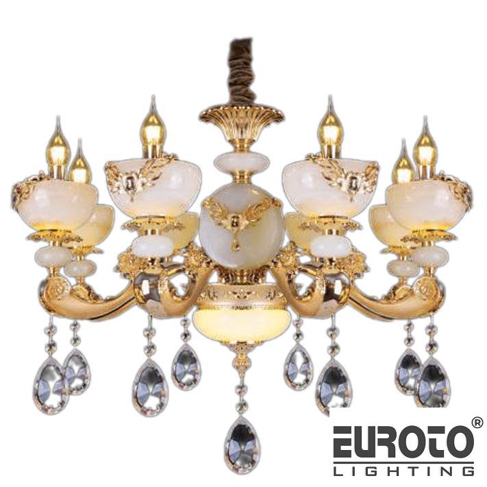 Đèn chùm phong thủy hợp Kim xi mạ, Đá bạch ngọc Ø850 x H500 Euroto